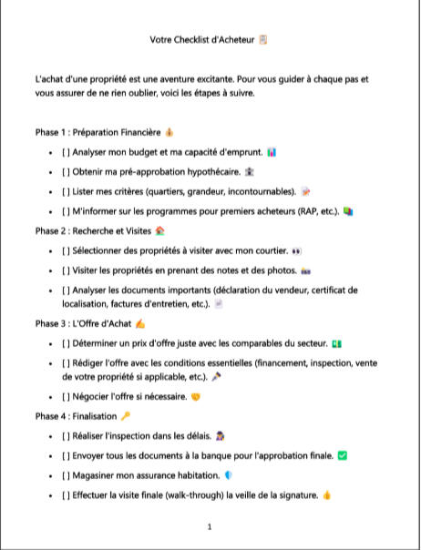 Je déploie une stratégie transactionnelle intégrée permettant de vendre votre propriété au prix optimal tout en sécurisant l'acquisition de votre prochaine maison. Mon processus élimine les risques de délais incohérents, de mauvaises surprises et de doubles hypothèques.Accompagnement Personnalisé des Premiers Acheteurs